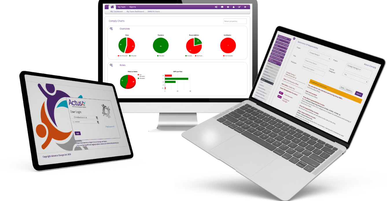 Actus Oversight doesn’t just give visibility to compliance teams — it extends accountability further down the organisation.Used by 10,000+ professionals, Actus Comply simplifies SMCR, SEAR, and Fitness & Probity management.